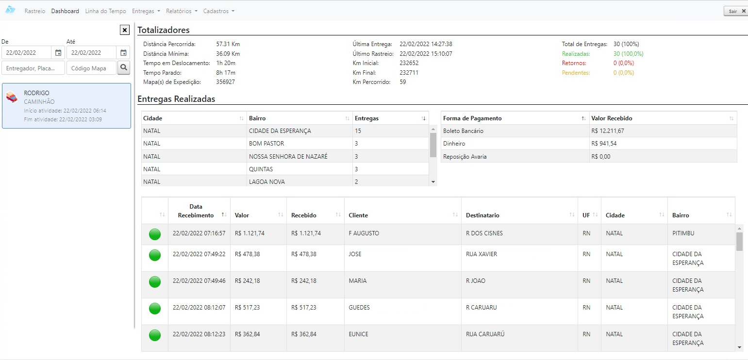 Utilizado pela gestor da equipe de entrega de sua empresa ou distribuidora, a dashboard de gestão é utilizada para realizar a consulta e o acompanhamento completo dos motoristas e das entregas realizadas, mostrando todas essas informações logísticas e muito mais na dashboard.
