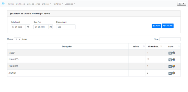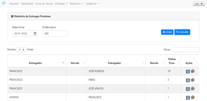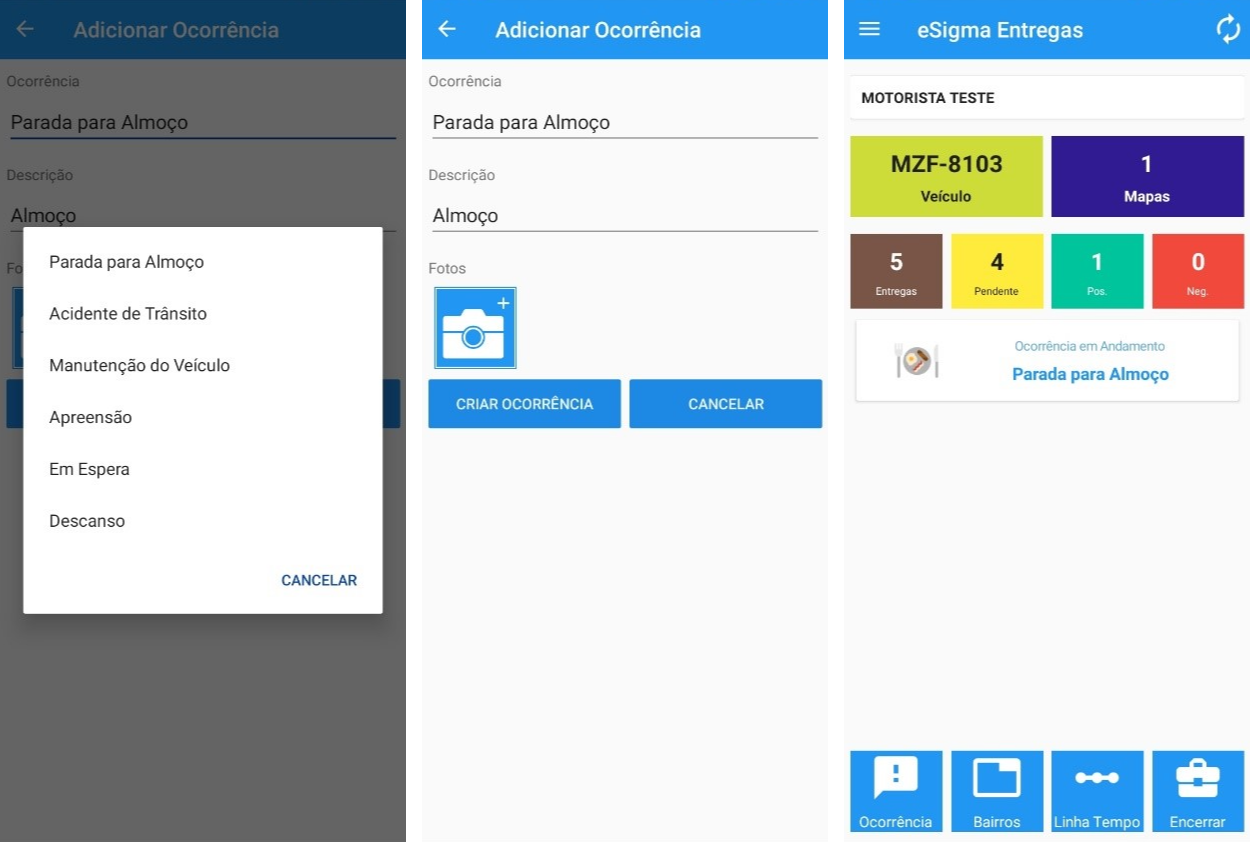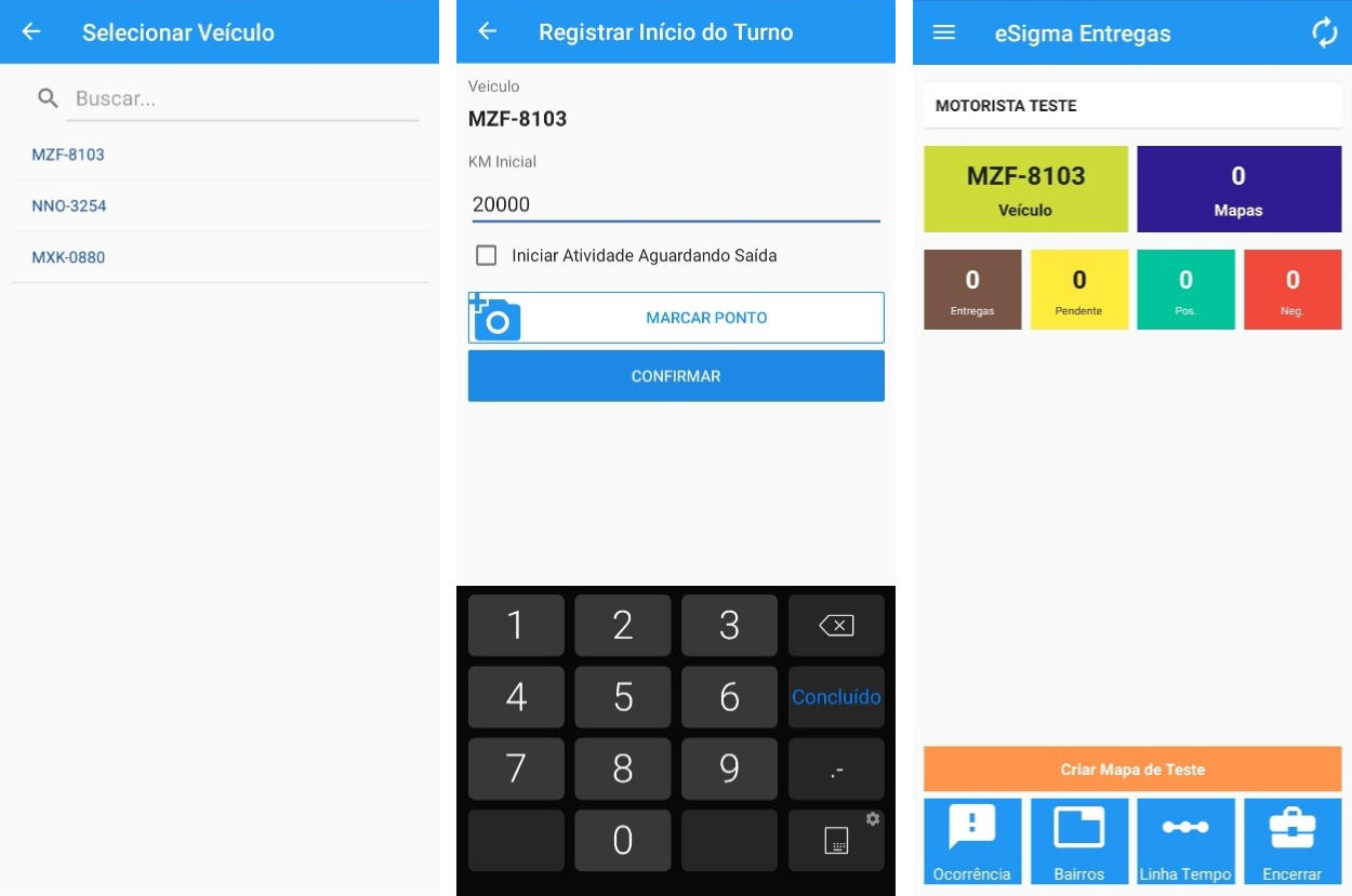 O eSigma Entregas registra as informações de logística da equipe de entrega da empresa.