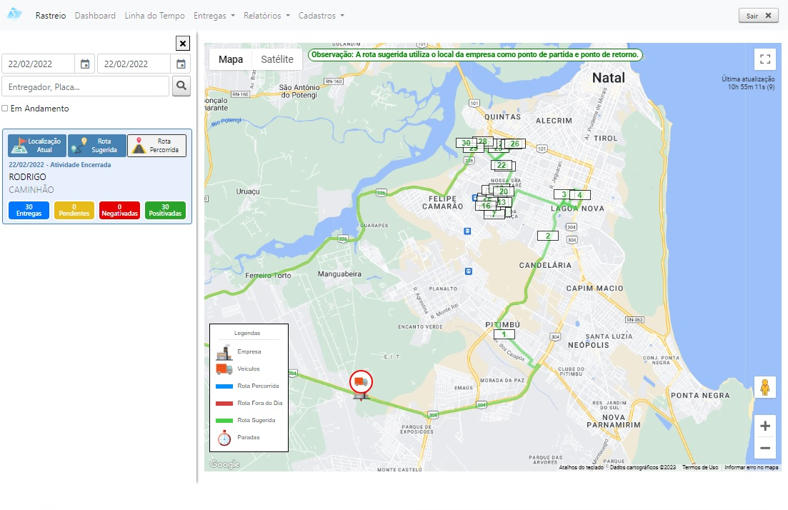 A solução é complementada com o site, que permite ao gestor da equipe de entrega acompanhar os entregadores, obter o registro de jornada (ponto) conforme legislação da lei do caminhoneiro, assim como integrar com o ERP para armazenamento eletrônico dos comprovantes de entrega dentre outras funcionalidades.