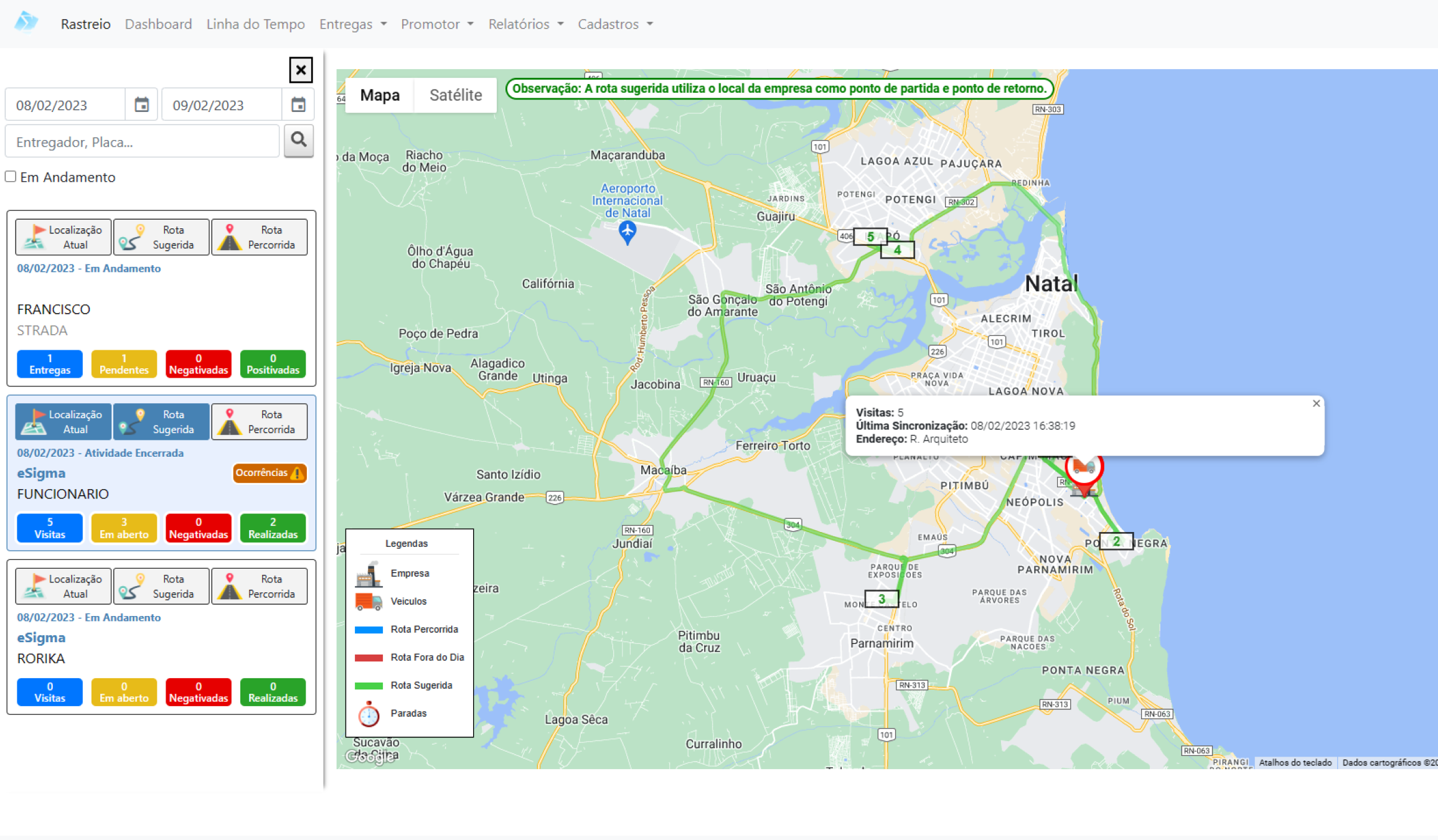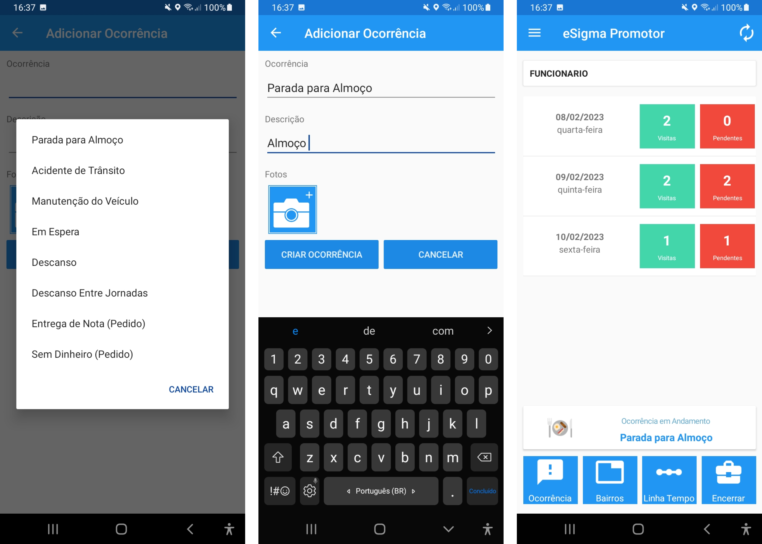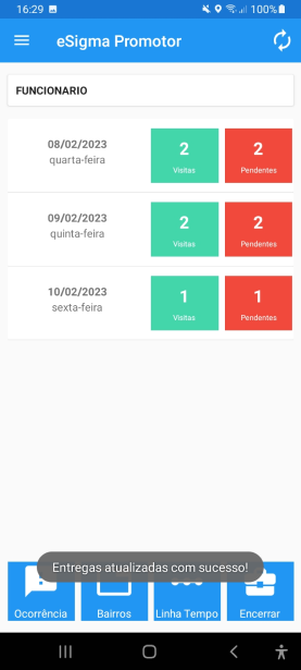 O eSigma Promotor registra as informações de logística da equipe de promotores da empresa.