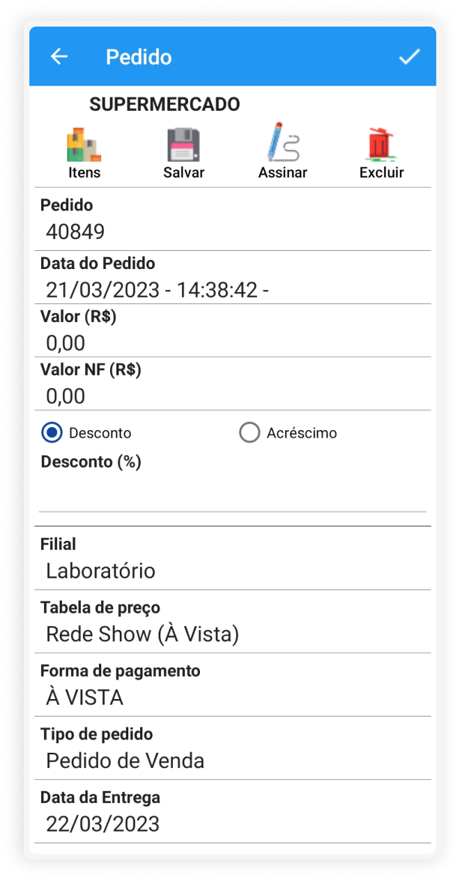 Assinatura do cliente para confirmar pedido, com geração de arquivo pdf