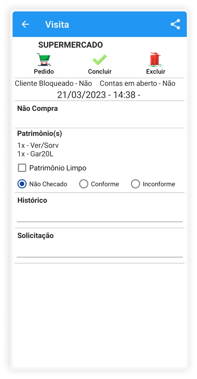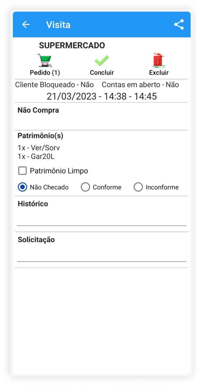 Cliente com visita sem pedidos já enviada hoje